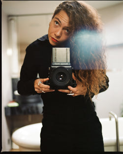 Webb isn’t interested in being an invisible photographer. Her lens is both introverted and extroverted, capturing the beauty she sees in others while using photography as a tool to witness her changing self. A visual archive of her experiences. She describes herself as always existing in ‘halves’, a notion that comes through in her ability to be both behind the camera and in front of it. Her work shows a clear intimacy with the self as well as with others.