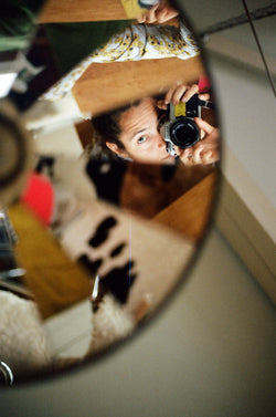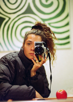 Lily Bertrand-Webb’s studio is filled to the brim with folders of her archive collections. An impressive array of broken cameras and lots, and lots of photographs. In a photo of herself, in which she couldn't have been more than 3 years old, she’s holding her godfather’s camera and taking pictures. Another self-portrait is displayed in a lightbox that had recently been shown at the Timothy Taylor Gallery. Taken over lockdown, a difficult time in her life, she now finds it uncomfortable to look at.