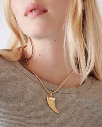 A pendant in the shape of a horn, in our signature Florentine Finish 18k Gold. It is approximately 3cm tall and features a classic Carolina Bucci link.