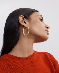A pair of large oval hoops made from 18k Gold in our signature Florentine Finish.