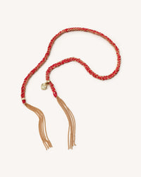 This Lucky bracelet features an 18k gold diamond-cut chain, hand-braided with red silk and finished with a heart charm symbolising Love.