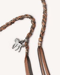 This Lucky bracelet features an 18k gold diamond-cut chain, hand-braided in a two-tone combination and finished with a horse charm symbolising Grace.