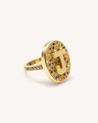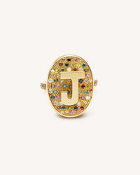 This second generation of Scarab initial rings features a table of multicolour pavé stones in set combinations of precious stones.