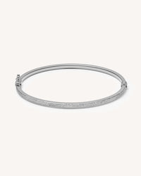 This oval bangle comes in 18k Gold — half of it in our signature Florentine Finish, the other half in a high-shine finish. It measures 6.5cm in diameter and features a clasp closure.